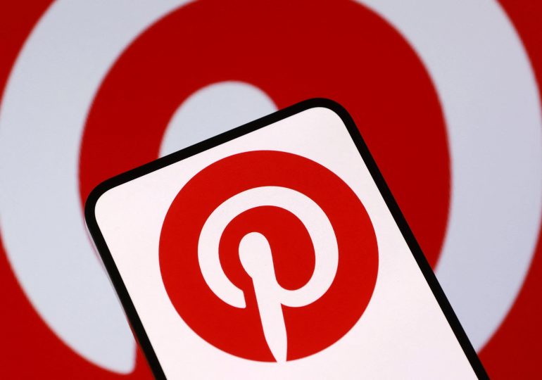 In this photo illustration, a smartphone displays the logo of Pinterest in front of a screen showing the company’s latest stock market chart on February 3,...