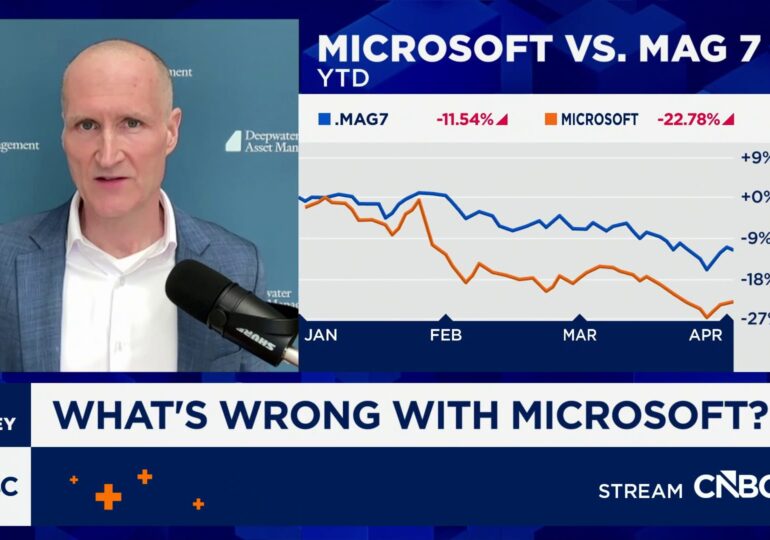 The Microsoft store is pictured in Manhattan on March 31, 2026, in New York City. Zamek | View Press | Corbis News | Getty Images A...