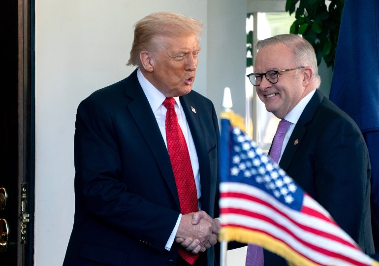 U.S. President Donald Trump, and Anthony Albanese, Australia’s prime minister, shake hands outside the West Wing of the White House in Washington, DC, US, on Monday,...