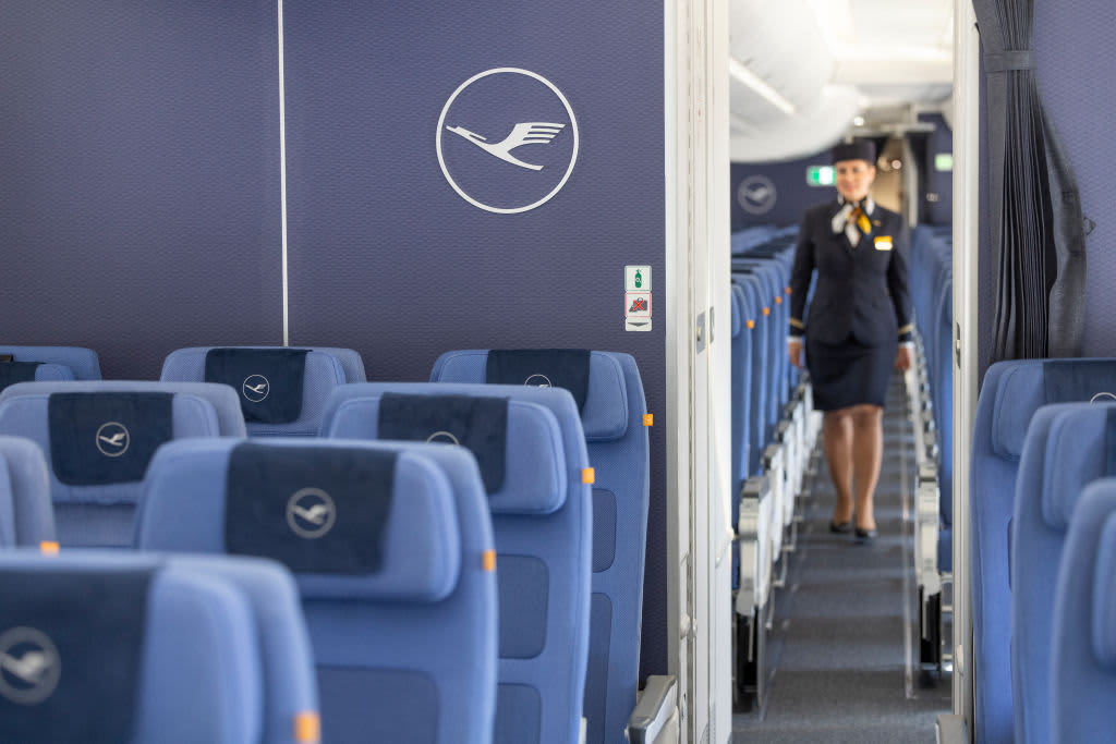 View taken inside a Lufthansa Airbus A350 airplane on March 19, 2025.