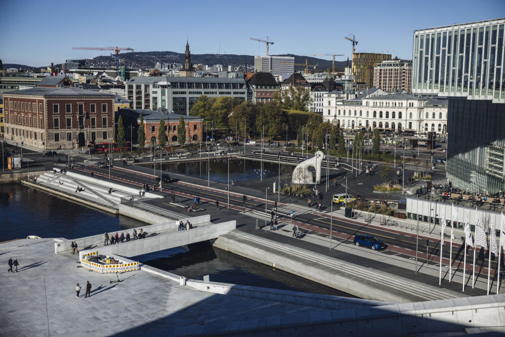 A view of Oslo seen from the roof of the Oslo Opera House in Oslo, Norway, on Thursday, Oct. 21, 2021.